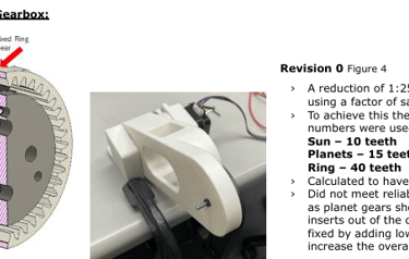 Utilized 45-degree helical gears to transfer power from the servo to the claw.