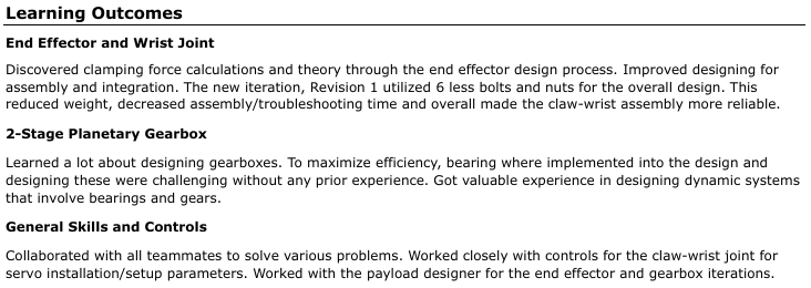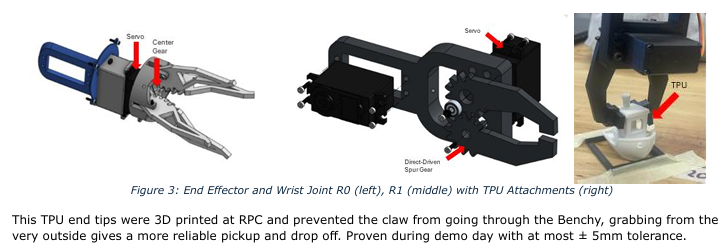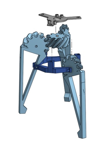 The goal was to create a claw that could pick up and place a Benchy, operate on a single servo and operate reliably. This design and each revision was completed using Onshape due to its convenient gear generating software.
